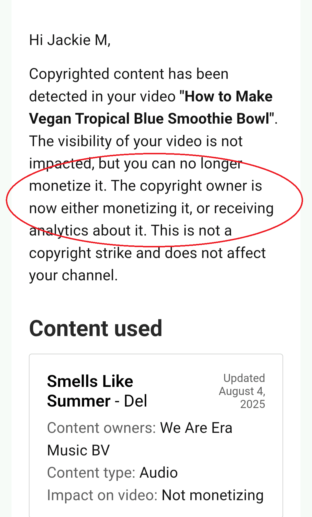 1) they continue to lodge new claims on videos which use the SAME piece of music on my YouTube channel. Sometimes within minutes or hours. This has dragged on for a month, so it’s not like they needed a day or two to remove Smells Like Summer from their music assets database after seeing my evidence.